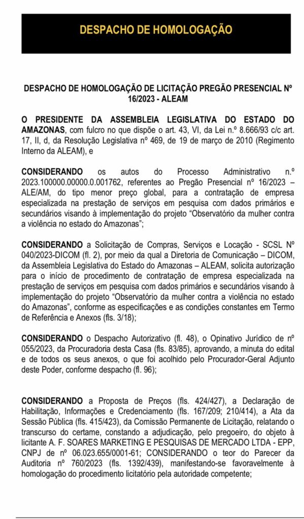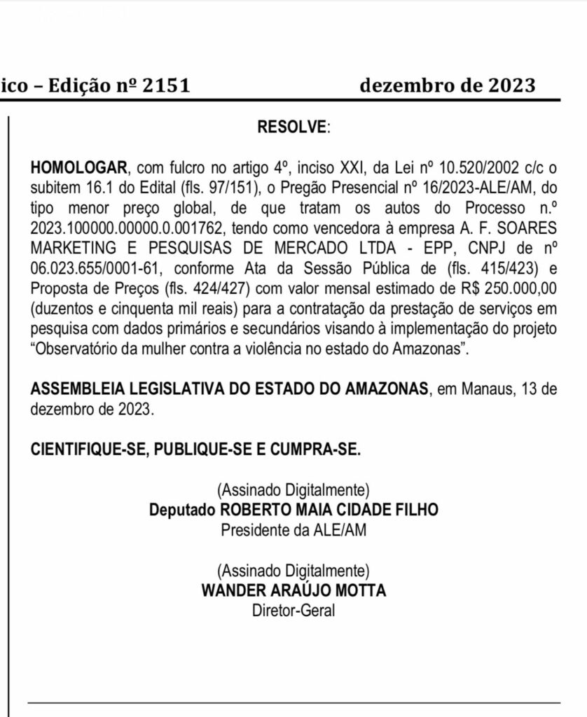 Vale ressaltar que a Action tem uma relação de longa data com Roberto Cidade. Em 2023, a empresa venceu uma licitação no valor de R$ 250 mil na Assembleia Legislativa do Estado do Amazonas (Aleam), presidida por Cidade, para fornecer a pesquisa “Observatório da Mulher contra a Violência no Estado do Amazonas”.