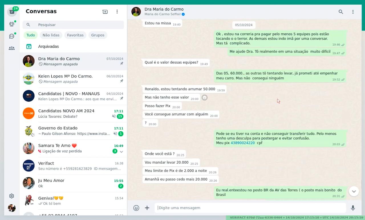 Manaus – A vice-candidata Maria do Carmo Seffair (Partido Novo), integrante da chapa do Capitão Alberto Neto (PL), está sendo alvo de uma denúncia robusta apresentada à Polícia Federal e ao Ministério Público Federal. Uma série de documentos indicariam a suposta existência de repasses de dinheiro de forma ilegal, abuso de poder econômico e uso das empresas de Maria do Carmo para o cometimento de supostos crimes eleitorais.
