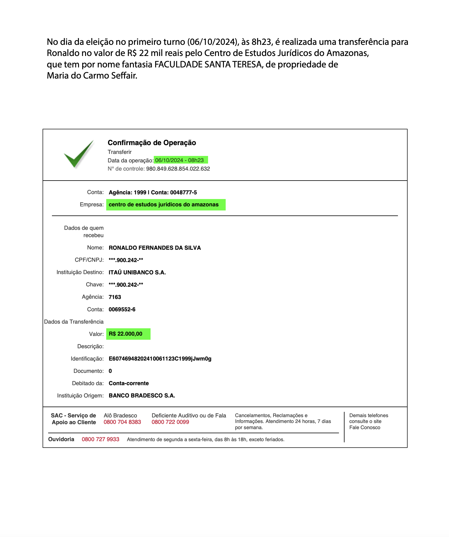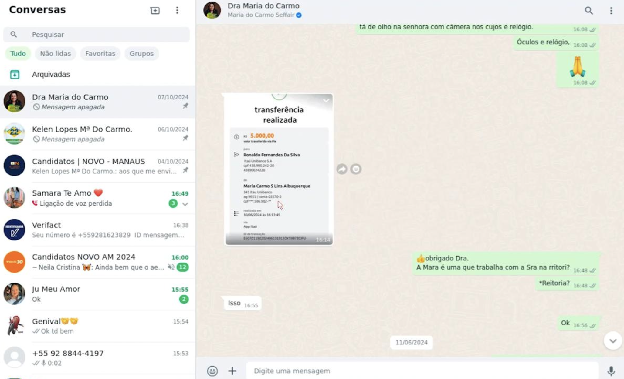 No áudio também fica claro que não só recursos financeiros do grupo empresarial de Maria do Carmo é usado para beneficiar sua campanha como também a estrutura da FAMETRO e Santa Tereza oi utilizada para as operações. Ouça áudio com a denúncia: