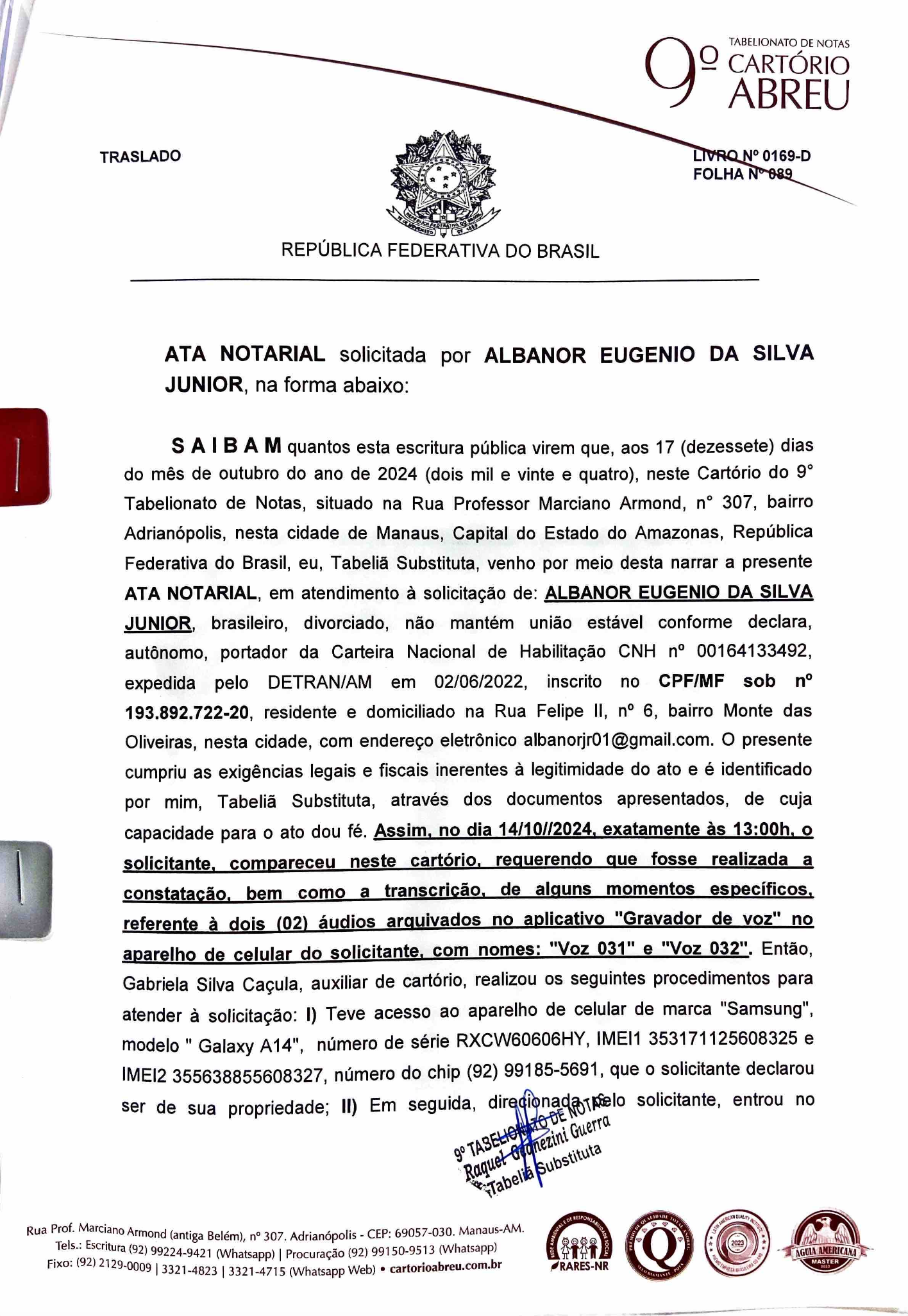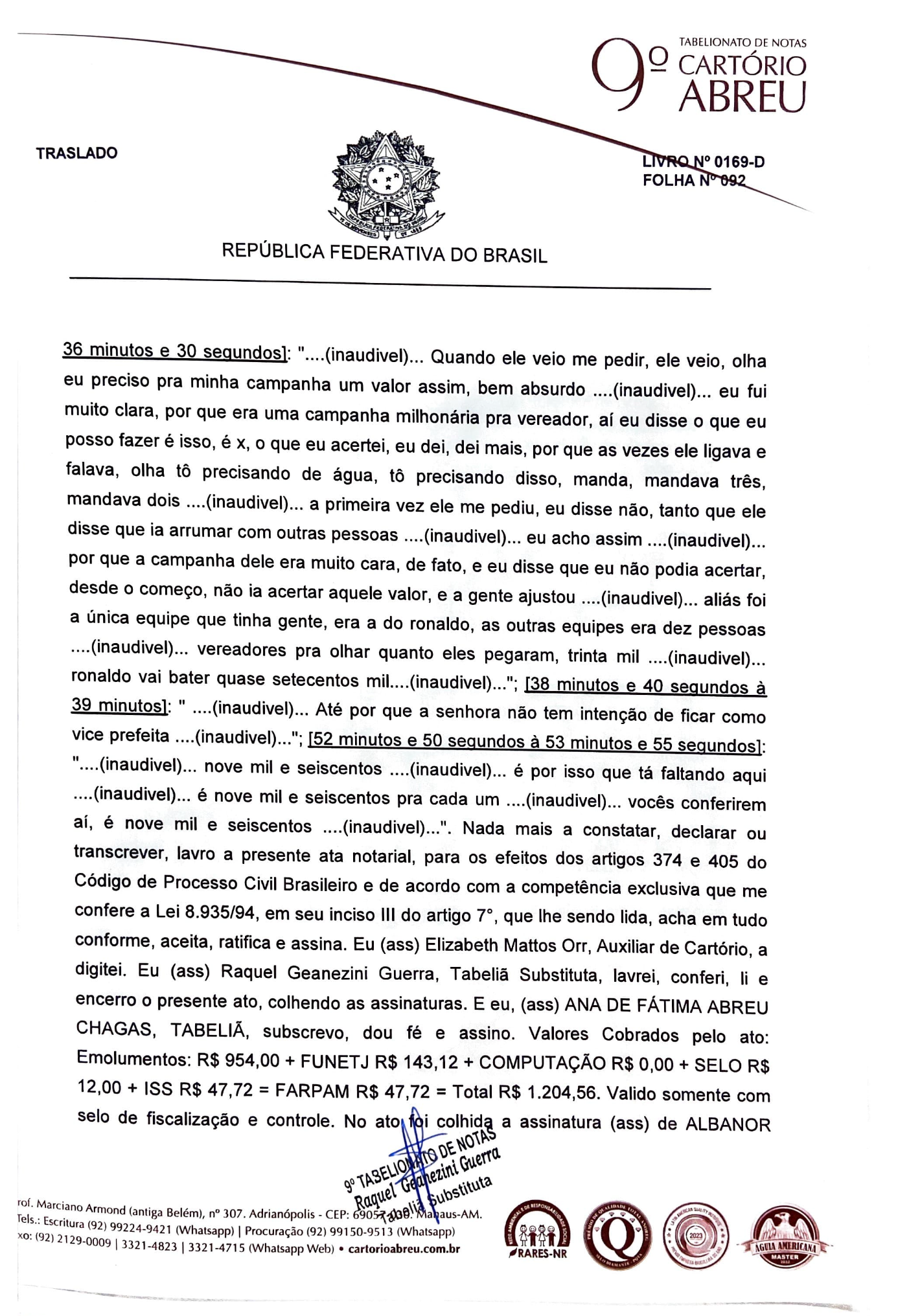 ATA NOTARIAL Transcrição dos áudios