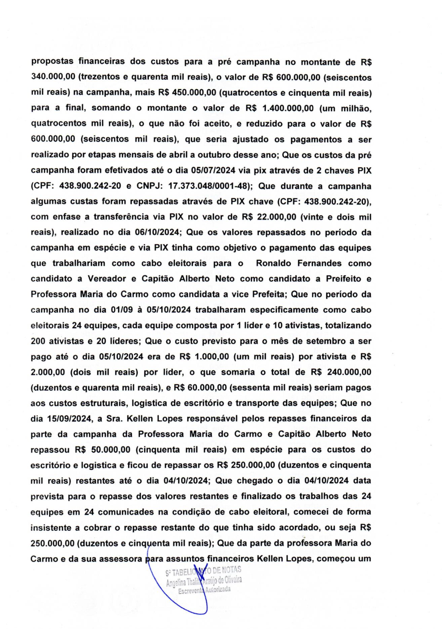 A denúncia pode levar à cassação da chapa Alberto Neto-Maria do Carmo por abuso econômico e uso de caixa 2.