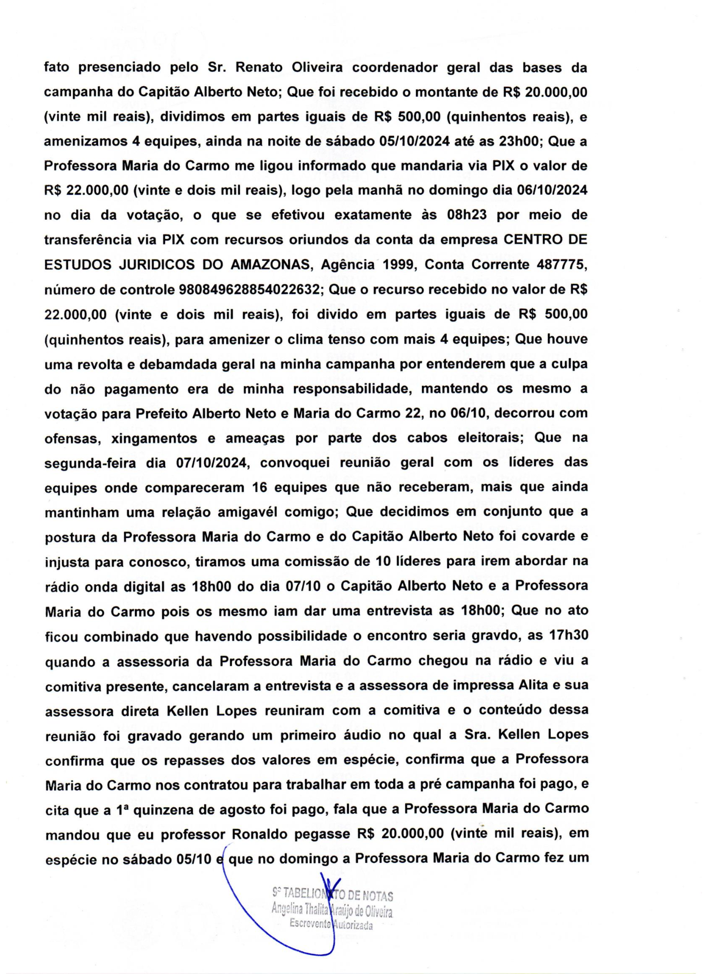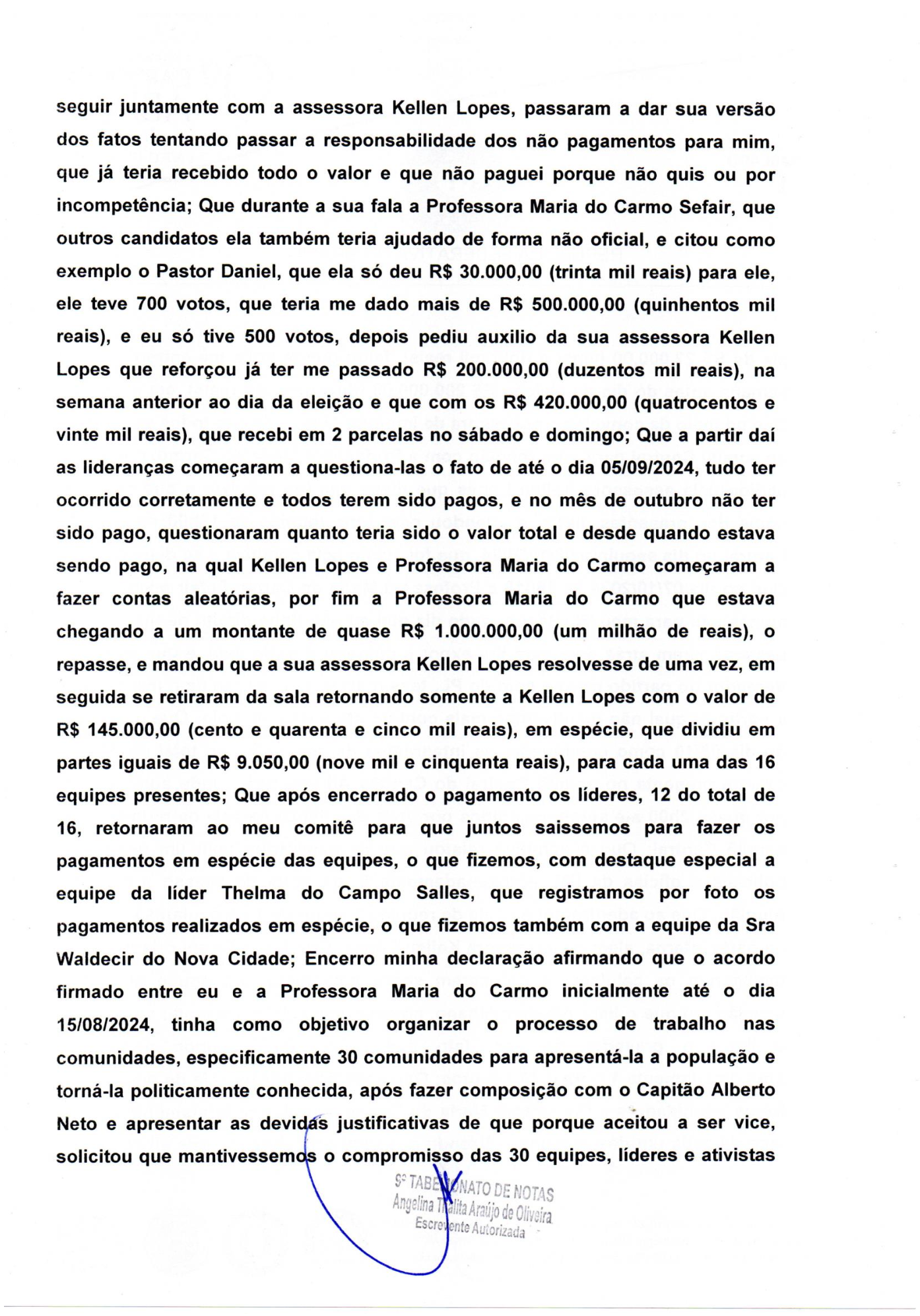 O autor da denúncia é o professor Ronaldo Fernandes, que se candidatou a vereador pelo Partido Novo. Fernandes reuniu gravações, fotos, extratos bancários e prints de conversas de aplicativos que comprovam que Maria do Carmo teria repassado ilegalmente dinheiro para ele e o grupo de 220 cabos eleitorais sob seu comando. Numa das gravações, Maria do Carmo admite já ter enviado quase R$ 1 milhão pelo grupo liderado pelo denunciante.