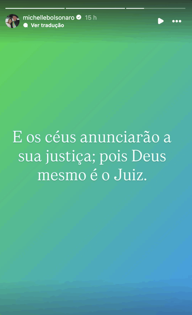 Brasil – Após a decisão do ministro Alexandre de Moraes, do Supremo Tribunal Federal (STF), que determinou a prisão domiciliar de Jair Bolsonaro (PL), a ex-primeira-dama Michelle Bolsonaro se manifestou nas redes sociais, publicando uma mensagem com teor religioso: “E os céus anunciarão a sua justiça, pois Deus mesmo é o juiz”.
