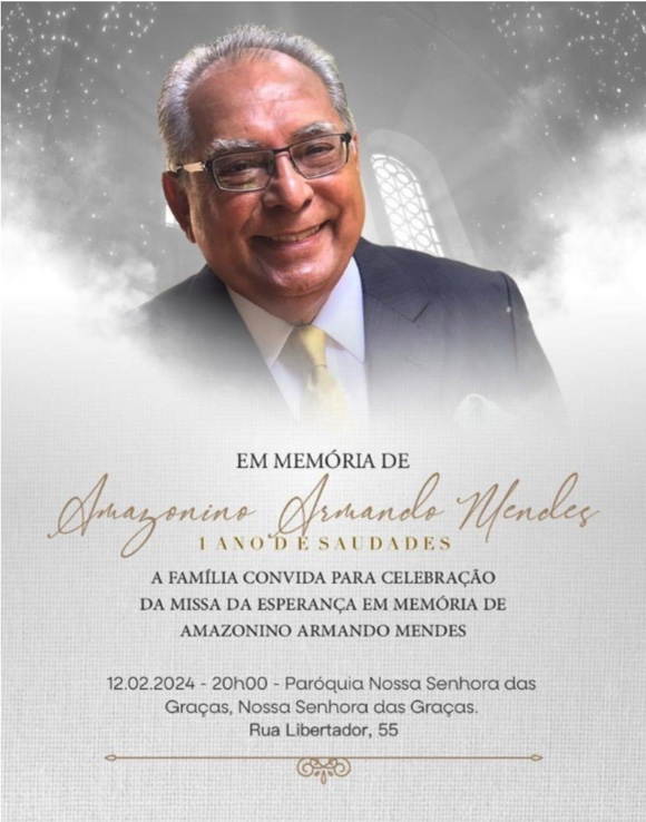 Amazonas – Nesta segunda-feira (12), familiares, amigos e admiradores se reúnem para uma emocionante celebração em memória de um dos maiores expoentes da política do Amazonas, Amazonino Armando Mendes. A missa em homenagem a sua vida e legado será realizada na Paróquia Nossa Senhora das Graças, localizada na rua Libertador, às 20h.