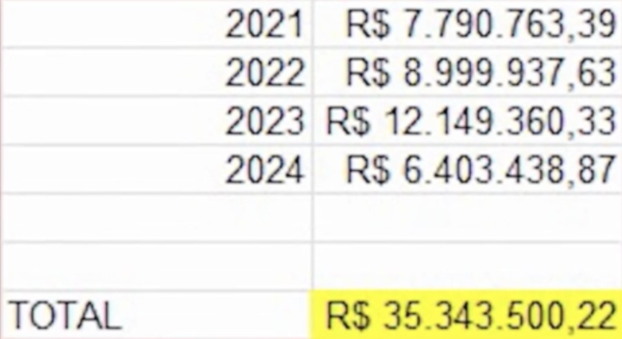Entre 2021 e 2024, a Agência de Interatividade e Marketing Ltda (iMarketing), de propriedade de Duarte, embolsou mais de R$ 35,3 milhões dos cofres públicos, com destaque para os R$ 12,1 milhões recebidos apenas em 2023, o ano mais lucrativo para a empresa.
