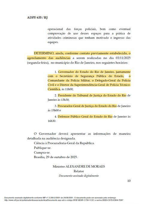Brasil – O ministro Alexandre de Moraes, do Supremo Tribunal Federal (STF), determinou nesta quarta-feira (29) que o governador do Rio de Janeiro, Claudio Castro, preste esclarecimentos sobre a Operação Contenção, que deixou pelo menos 132 mortos.