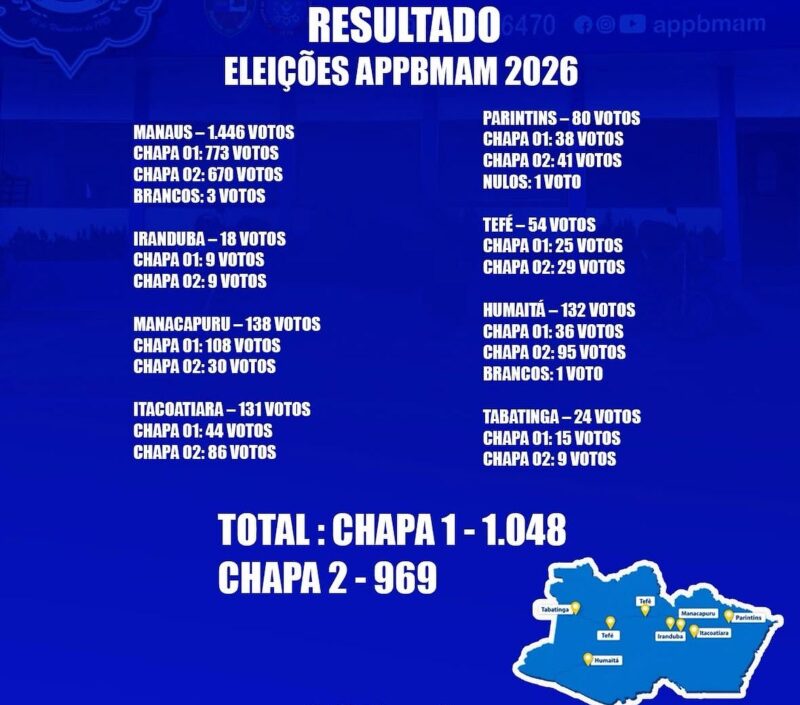 Amazonas – A Associação dos Praças da Polícia e Bombeiro Militar do Amazonas (APPBMAM) definiu sua nova diretoria neste sábado (28), em uma votação que terminou com um gosto amargo para o vereador Sargento Salazar (PL-AM). Apesar de ter feito campanha aberta e pedido votos para a Chapa 2, liderada pelo Sargento Victor Castro, o parlamentar viu seus aliados serem derrotados nas urnas pela Chapa 1, encabeçada pelo Cabo Guthemberg de Oliveira.