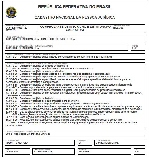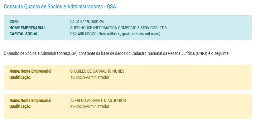 A Suprihouse Informática Comércio e Serviços Ltda, com sede no bairro Adrianópolis, em Manaus, atua no mercado desde 2001. Com um capital social de R$ 2,4 milhões, valor próximo ao do contrato firmado, a empresa tem como sócios Charles de Carvalho Nunes e Alfredo Assante Dias Junior.