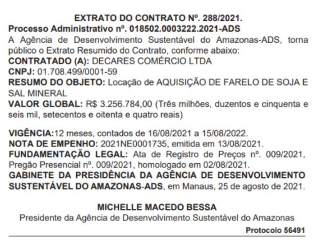 No Amazonas, onde está a sede da Decares, a empresa se envolveu em contratos lucrativos com a Agência de Desenvolvimento Sustentável do Amazonas (ADS). Entre 2021 e 2022, a Decares recebeu mais de R$ 3 milhões para fornecer farelo de soja e sal mineral. A empresa, sediada no bairro Tarumã, na zona Oeste de Manaus, foi fundada em 1997 e originalmente especializada na venda de medicamentos. No entanto, ao longo dos anos, diversificou suas atividades para incluir o comércio de produtos variados, desde frutas até máquinas.