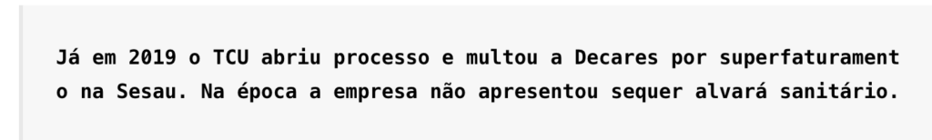 Entre 2019 e 2020, a Sesau e a Decares firmaram sete contratos suspeitos. As especificações e quantidades dos materiais comprados continuam sendo um mistério, enterradas na falta de transparência do portal do governo Antônio Denarium. A investigação revelou que a Decares Comércio, com sua diversidade de atividades e contratos lucrativos, se tornou uma das empresas preferidas da Sesau, apesar das contínuas investigações e penalidades do TCU.