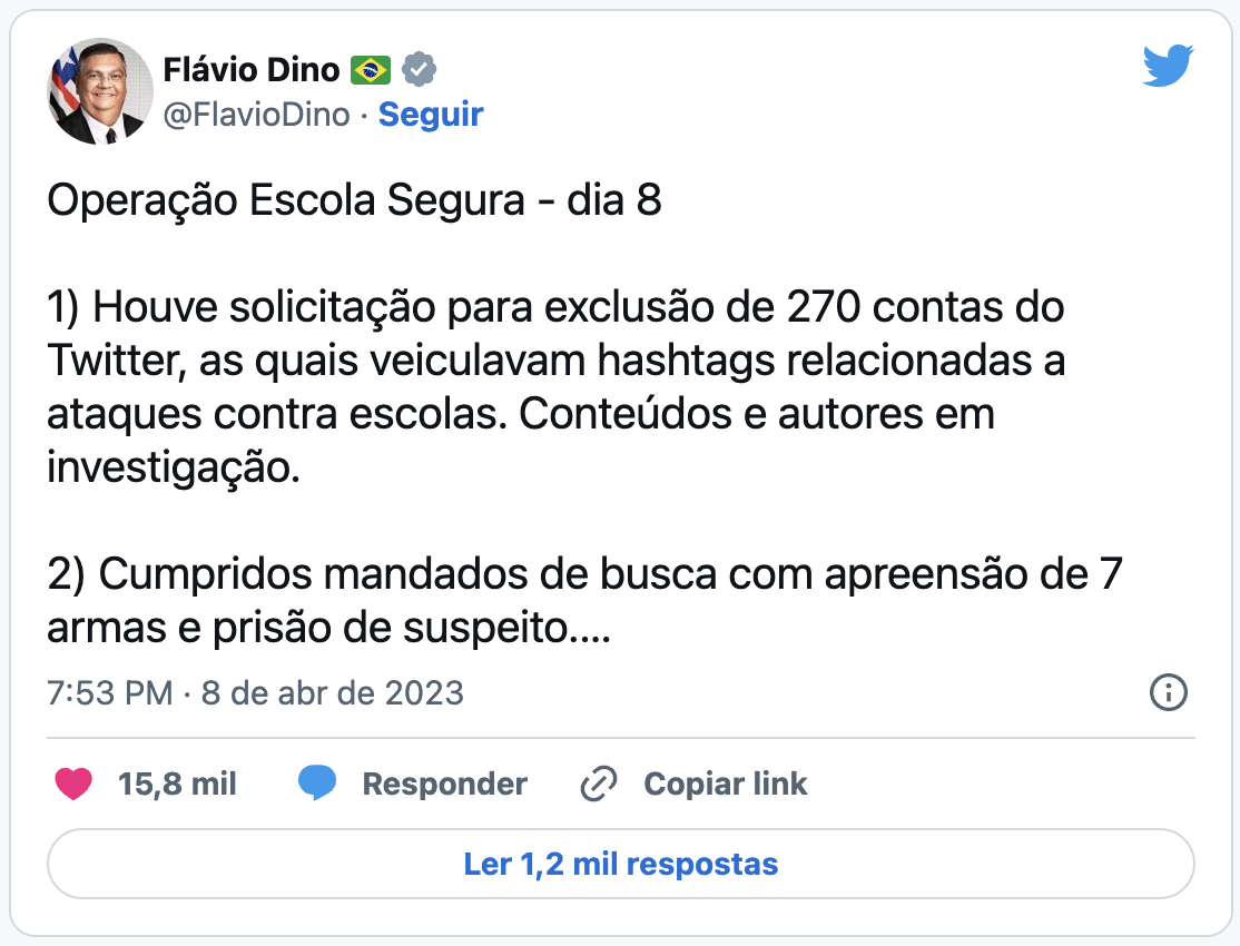 Operação Escola Segura: Justiça pede exclusão de 270 contas do Twitter