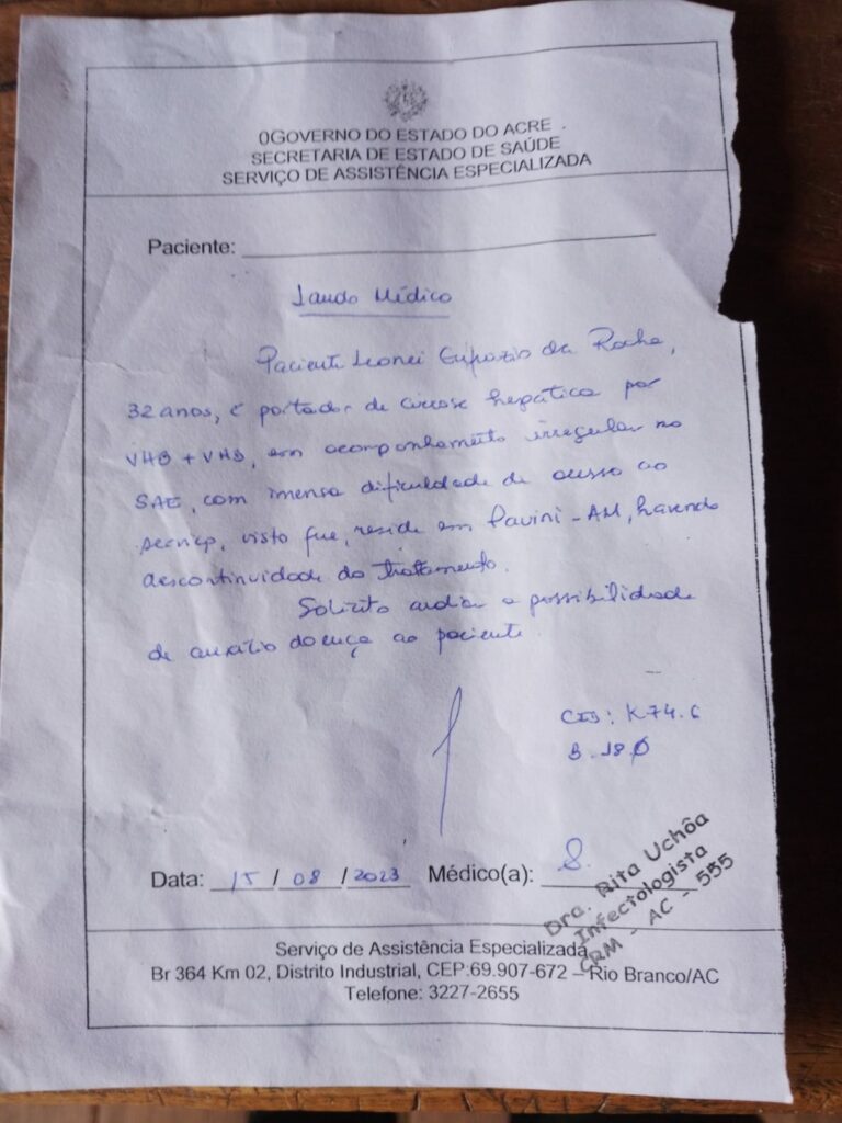 Segundo a denúncia, além do caso de Leonei, outros pacientes também estariam enfrentando cancelamentos de agendamentos em hospitais do Acre e de Manaus, levantando preocupações sobre a eficácia e a equidade do programa TFD.