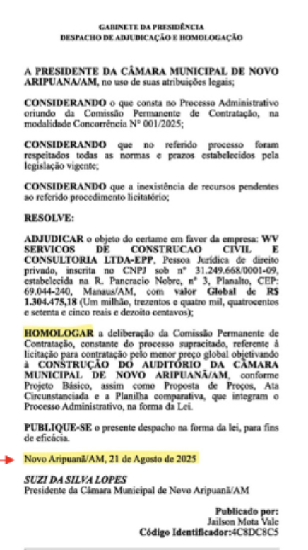 A denúncia não trata apenas da construção de um auditório. Ela coloca em debate o uso do dinheiro público, a transparência da Câmara e o compromisso da gestão com os trâmites legais.