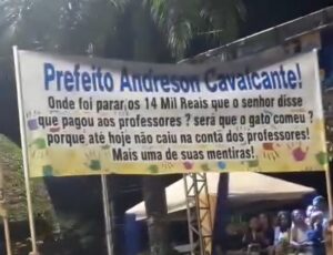 Professores protestam contra prefeito Andreson Cavalcante durante festa de aniversário de Autazes