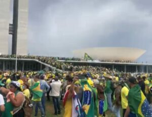 Brasil - Manifestantes subiram a rampa do Congresso Nacional e ocuparam o teto do Parlamento neste domingo (8). O grupo…