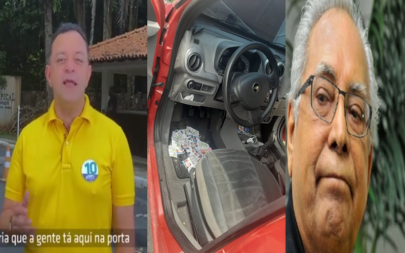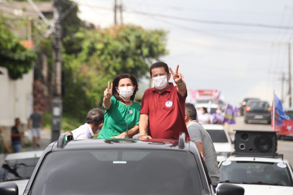 Veja o momento que o grupo de Amazonino Mendes, joga pela janela do carro diversos ‘santinhos’ nas ruas do bairros…