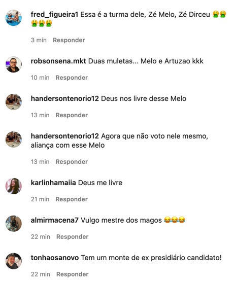 A parceria de ambos tem gerando comentários negativos nas redes sociais, tendo em vista que José Melo teve mandato cassado em 2017 por compras de voto. No entanto, o mesmo estaria tentando emplacar um mandato como deputado estadual, com a benção de ‘Negão’. Veja comentários:
