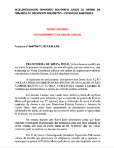 A Justiça do Amazonas acatou o pedido de Francinesia e determinou que Patrícia Lopes apresentasse a documentação necessária para a contratação das duas pessoas indicadas pela prefeitura. Além disso, foi estipulada uma multa diária de R$ 10 mil em caso de descumprimento da ordem judicial.