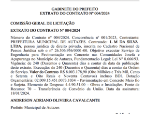 Amazonas – Na última quinta-feira, 18, a Prefeitura Municipal de Autazes divulgou um extrato de contrato que deixou muitos cidadãos perplexos e levantou inúmeras dúvidas sobre a gestão dos recursos públicos.