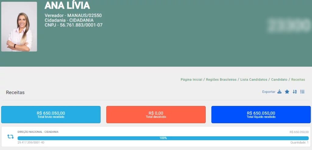 Manaus – Na corrida eleitoral para a Câmara Municipal de Manaus, um nome se destaca não apenas pela sua atuação política, mas também pelo montante substancial recebido do fundo eleitoral: Ana Lívia Barreto e Silva. Com um expressivo total de R$ 650 mil, Ana Lívia se torna a candidata a vereadora mais beneficiada entre todas as concorrentes, especialmente quando comparada com outras mulheres de seu partido, o Cidadania.