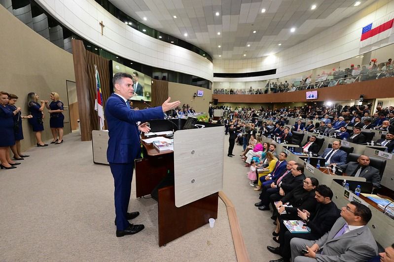 Manaus – O Prefeito de Manaus, David Almeida, na abertura dos trabalhos legislativos na Câmara Municipal de Manaus (CMM), na manhã desta segunda-feira, 10/2, entregou a Mensagem Governamental, destacou avanços históricos alcançados no primeiro mandato e as ações prioritárias para a nova gestão, com foco em saúde, educação, infraestrutura, assistência social, segurança e mobilidade.