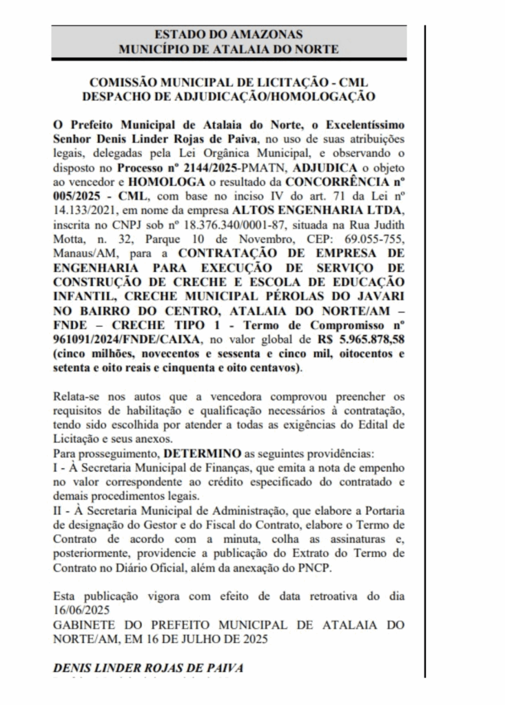 Amazonas – A recente contratação, por parte da Prefeitura de Atalaia do Norte, de uma empresa para construir uma nova creche municipal no valor de R$ 5,9 milhões, tem gerado questionamentos entre moradores, entidades civis e órgãos de fiscalização.