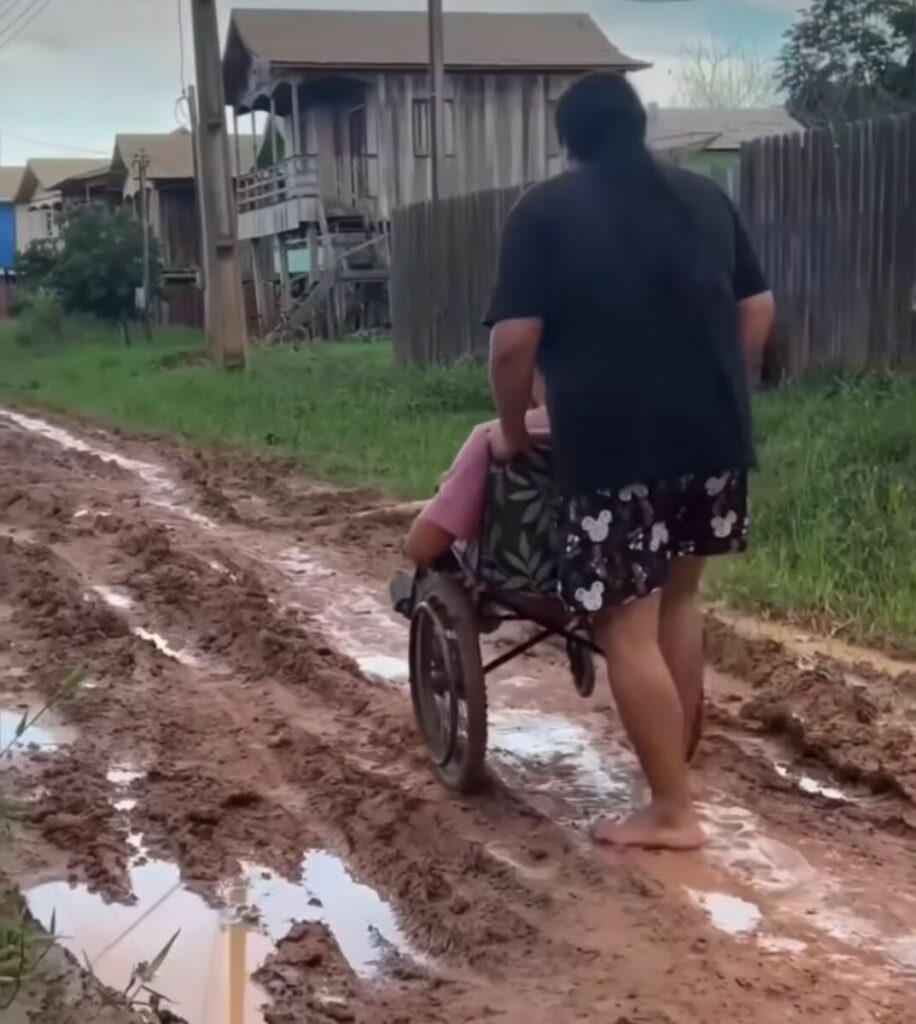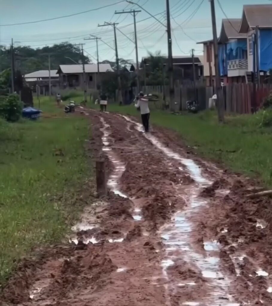Não muito longe dali, há ruas que nunca souberam o que foi ter asfalto ou pavimentação. Estas estradas de terra, viraram verdadeiros lamaçais com o retorno das chuvas, criando acidentes até para quem pedala de bicicleta pelo local. Além disso, sofrem os idosos e cadeirantes, que praticamente fazem um sacrifício para se locomoverem em meio um cenário tão caótico.