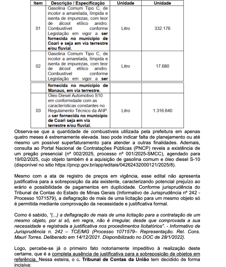 Conforme as denúncias, já existia um processo de licitação em andamento para a compra de combustíveis, mas a atual gestão, liderada por Adail Pinheiro, teria iniciado outro procedimento licitatório paralelo, o que gerou questionamentos. O Ministério Público chegou a recomendar a suspensão dessa nova licitação, mas a recomendação foi ignorada pela administração municipal, agravando ainda mais as suspeitas de irregularidades.