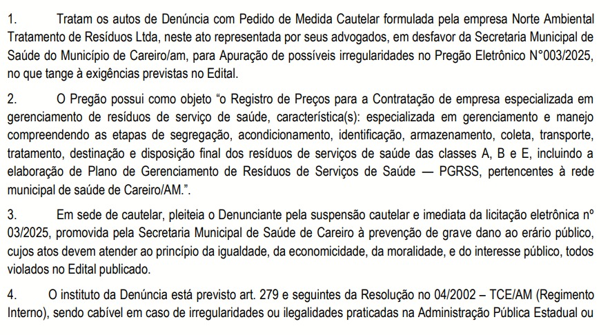 O despacho determina que o caso seja publicado no Diário Oficial Eletrônico do TCE-AM e encaminhado para relatoria, que será responsável pela condução da análise da medida cautelar. A investigação seguirá os trâmites legais até a deliberação final da Corte.