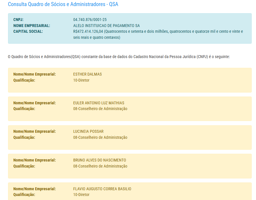 A empresa tem capital social no valor de R$472.414.126,04 e possui dez nomes em seu quadro de sócios e administradores.