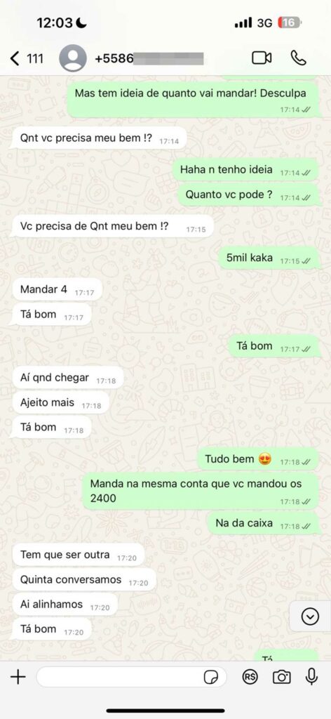 Apesar da acusação, em trocas de mensagens, Douglas Lima, que bom enfatizar, é casado, mantém conversas em tom “romântico” com a suposta vítima. Ela, inclusive, chega a agradecer por transferências bancárias e dá a entender que colocou um ponto final em um relacionamento.
