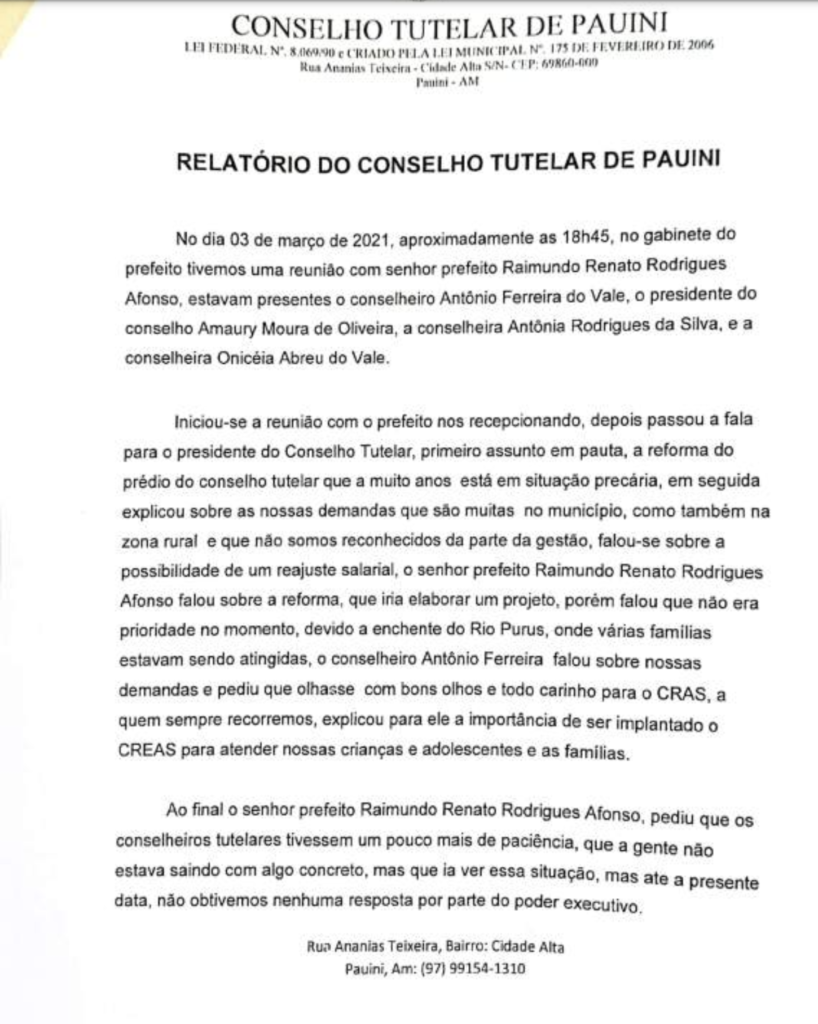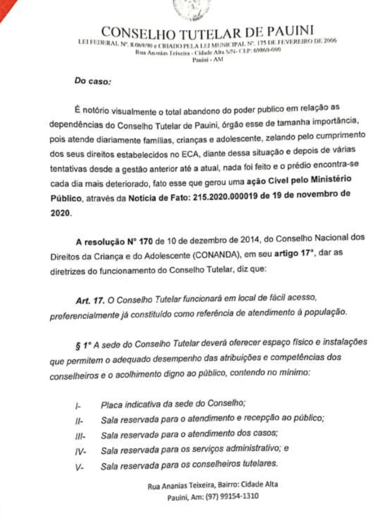 A situação precária do Conselho Tutelar de Pauini compromete o atendimento humanizado e de qualidade às crianças e adolescentes do município, evidenciando a falta de compromisso e zelo com os direitos fundamentais da população mais vulnerável.