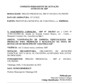 Amazonas – No cenário festivo de Tabatinga, cidade do interior do Amazonas, o prefeito Saul Bemerguy causou um rebuliço ao assinar um contrato para a produção da aguardada festa de Réveillon no município.
