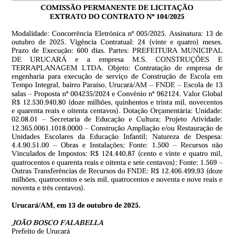 Prefeito vai pagar mais de R$ 12 milhões para construir uma única escola em Urucará; veja documentos