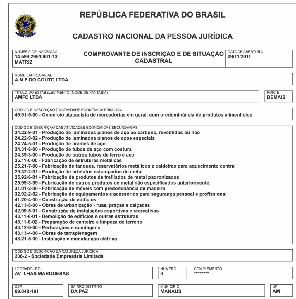 A M F DO COUTO LTDA – R$ 514.743,70;