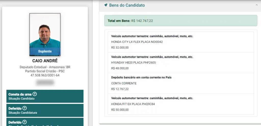Essa declaração se torna ainda mais surpreendente quando comparada com os dados declarados de anos anteriores. Em 2022, durante sua tentativa de se eleger deputado estadual, Caio André declarou um patrimônio significativamente maior, totalizando R$ 142.767,22. Naquela ocasião, ele listou três veículos avaliados em R$ 50 mil, R$ 48 mil e R$ 32 mil. A mudança drástica no valor do patrimônio entre 2022 e a atual declaração levanta questões sérias sobre a origem e o destino desses bens.