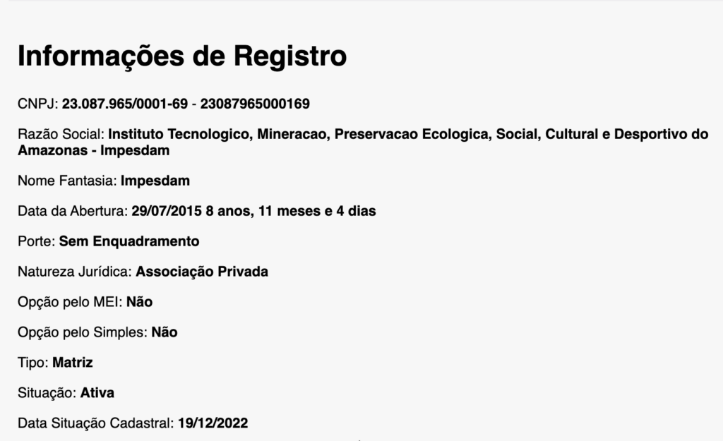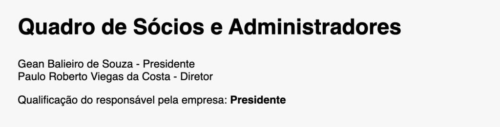 Inscrito sob o CNPJ 23.087.965/0001-69, o instituto tem no quadro de sócios e administradores Gean Balieiro de Souza, que aparece como presidente, e Paulo Roberto Viegas da Costa, no cargo de diretor.
