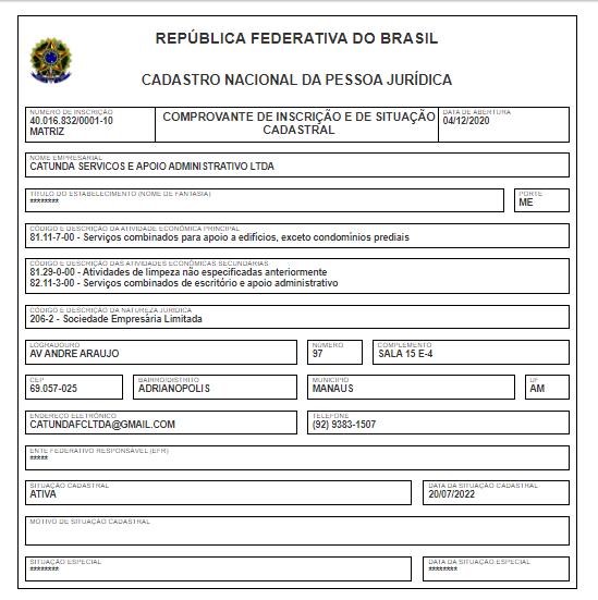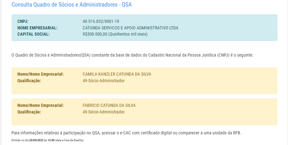 De acordo com informações da Receita Federal, a empresa Catunda Serviços e Apoio Administrativo Ltda está localizada em Manaus e tem como atividade econômica principal “serviços combinados para apoio a edifícios, exceto condomínios prediais”. Seu capital social é de R$ 500.000,00, pertencente a Camila Catunda e Fabrício Catunda.