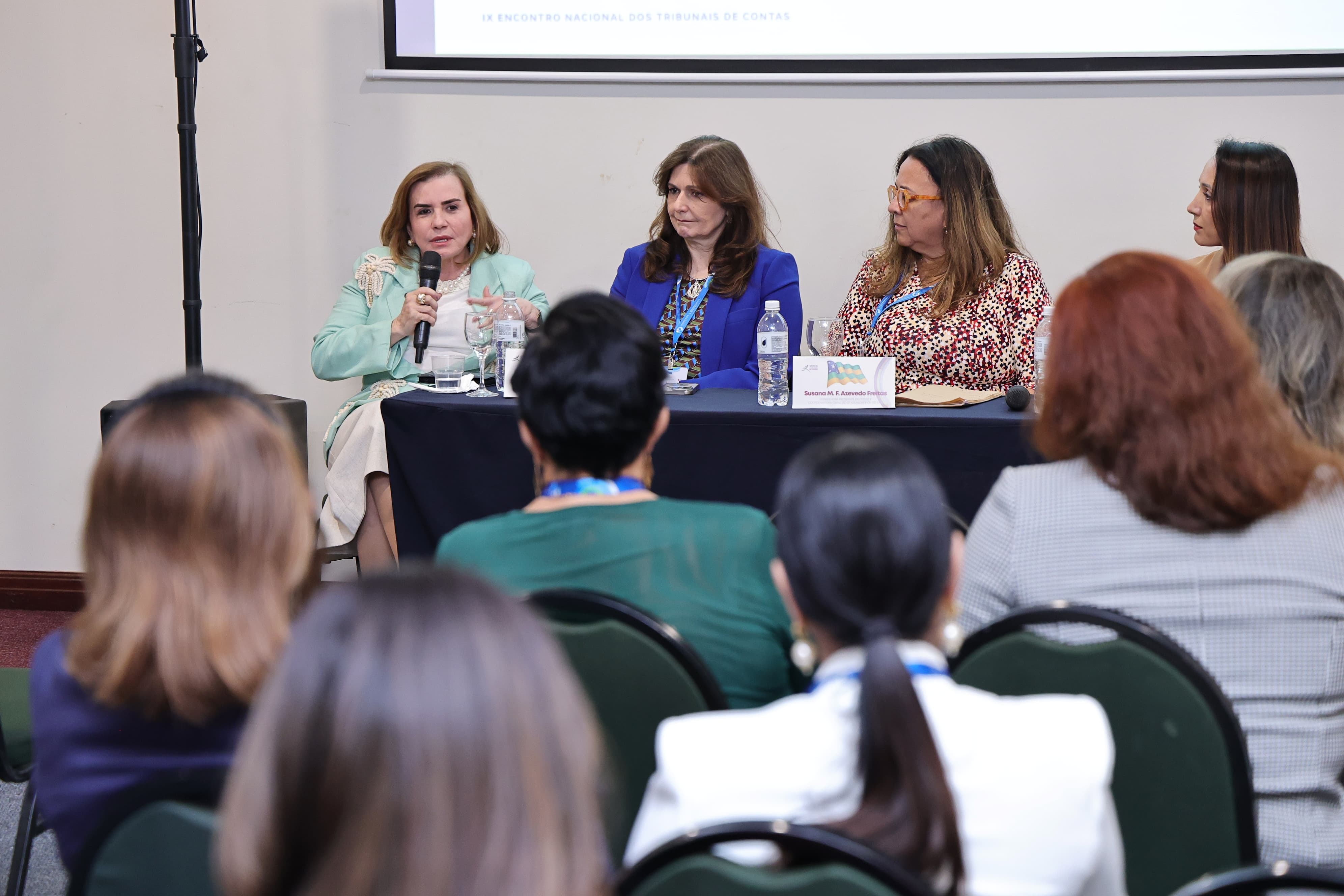 “Este encontro será uma oportunidade de discutirmos estratégias concretas para garantir que mais mulheres ocupem cargos de liderança e que a igualdade de gênero não seja apenas uma pauta, mas uma realidade nos tribunais de contas”, afirmou a presidente Yara em uma das reuniões do 9º Encontro Nacional dos Tribunais de Contas.