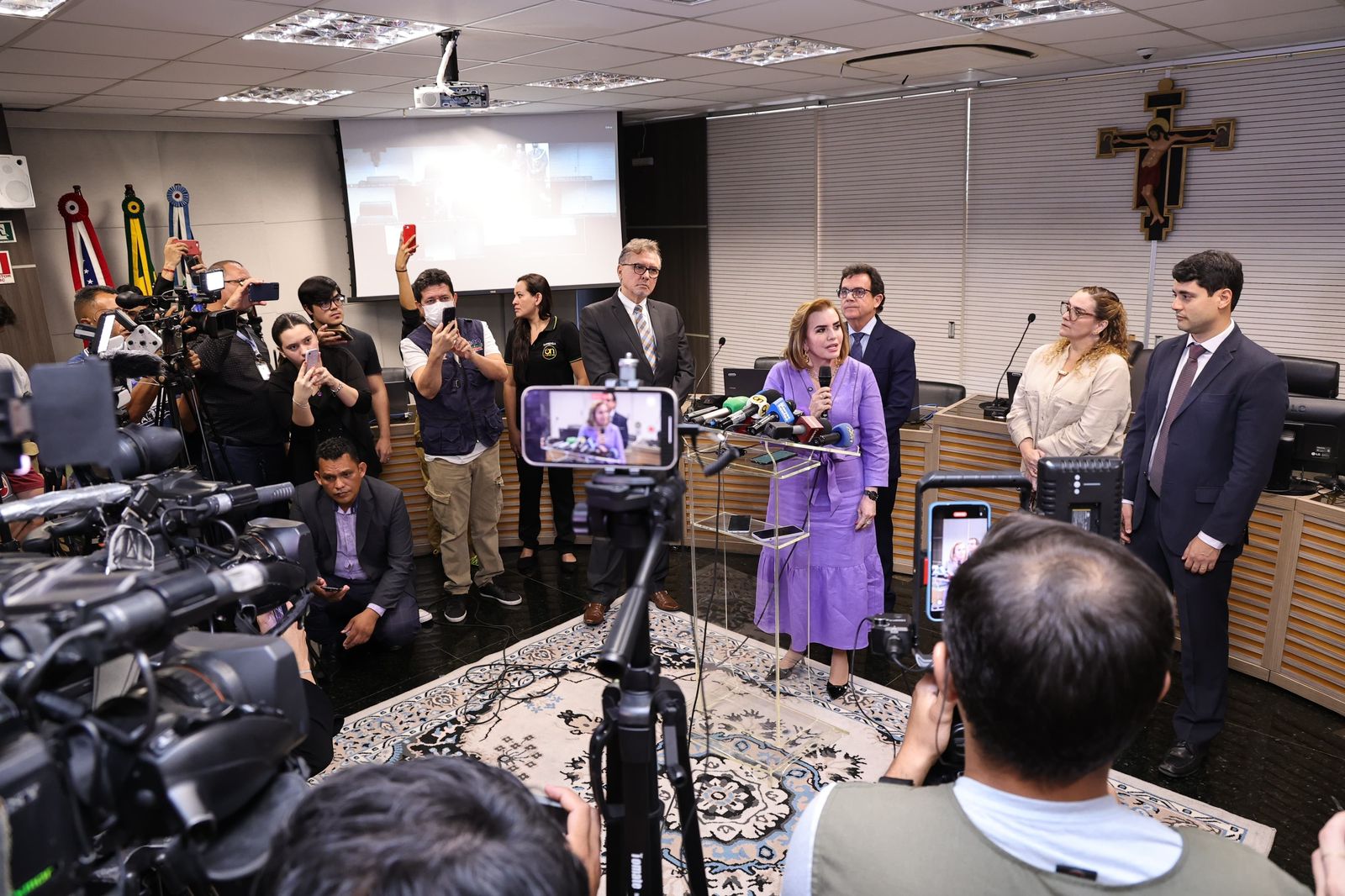 A entrega da lista contou com a participação do coordenador das Promotorias Eleitorais do Ministério Público do Amazonas (MPAM), Mauro Veras Bezerra, e do procurador regional eleitoral, Rafael da Silva Rocha. Representando o TCE-AM, também estiveram presentes a secretária do Tribunal Pleno, Bianca Figliuolo, o diretor jurídico, Rafael Albuquerque, e o servidor do TCE, Tiago Corrêa.