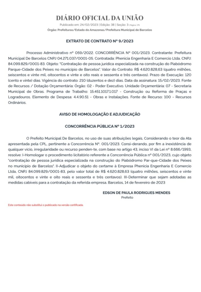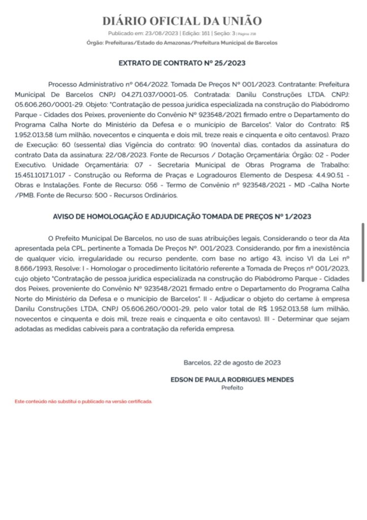 Amazonas – O prefeito de Barcelos, Edson Mendes, está sendo alvo de críticas devido aos atrasos e incertezas nas obras do “Novo Piabodromo” e do Festival do Peixe Ornamental de Barcelos (FESPOB).