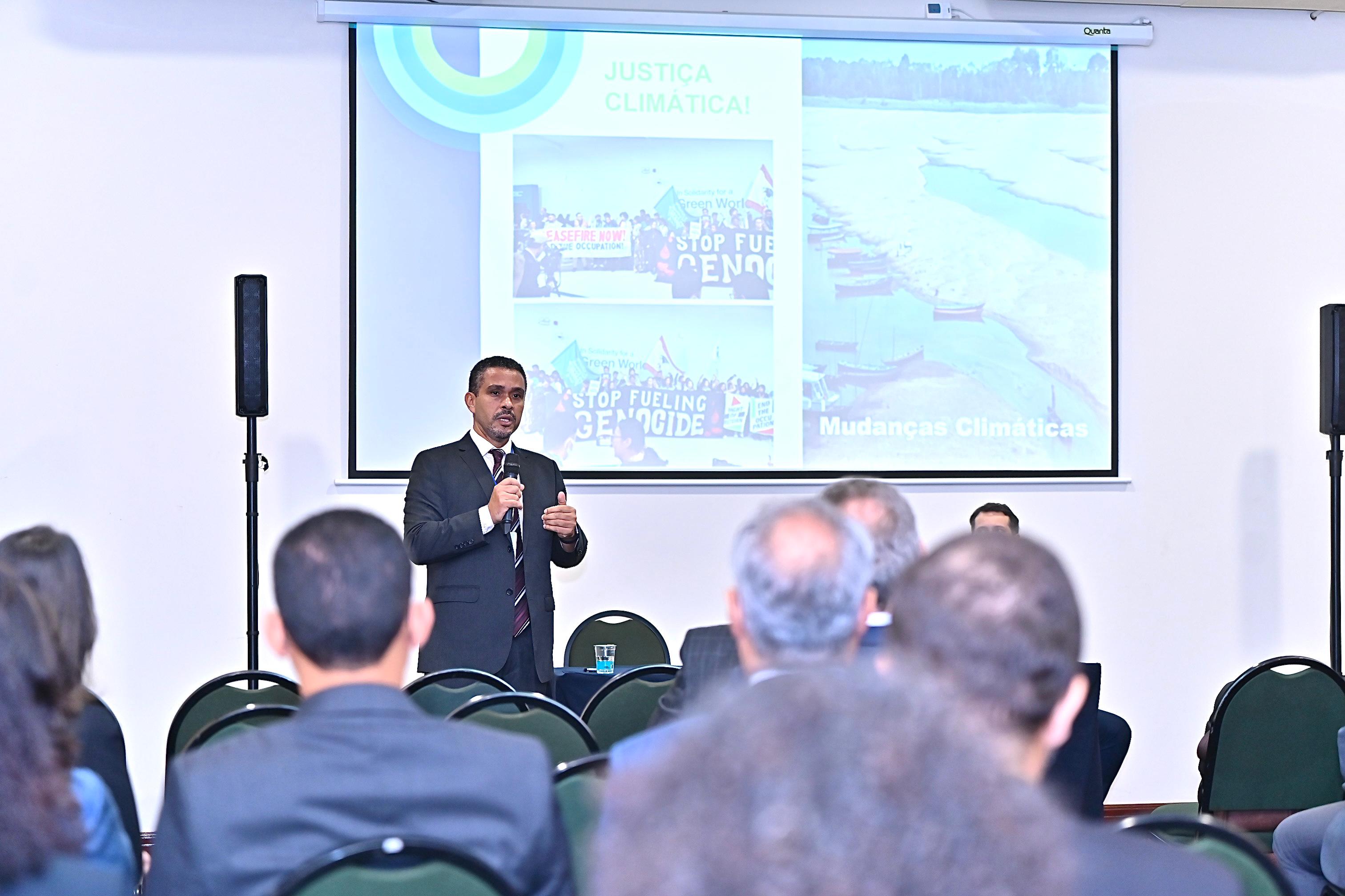 Ruy Marcelo, por sua vez, expôs a Nota Recomendatória 01/2024, que estabelece diretrizes para a fiscalização e capacitação em programas de proteção e defesa civil, ampliando o escopo de atuação dos Tribunais de Contas para cobrir áreas de risco e implementar políticas preventivas de resposta a emergências ambientais. “Temos, no Comitê de Sustentabilidade do IRB, uma participação significativa do TCE-AM, com o apoio do conselheiro Júlio Pinheiro, e da Anete Ferreira, nossa servidora. Estamos aqui para disseminar conhecimento sobre a crise climática, o déficit de saneamento básico e a sustentabilidade nos Tribunais de Contas”, afirmou o procurador.
