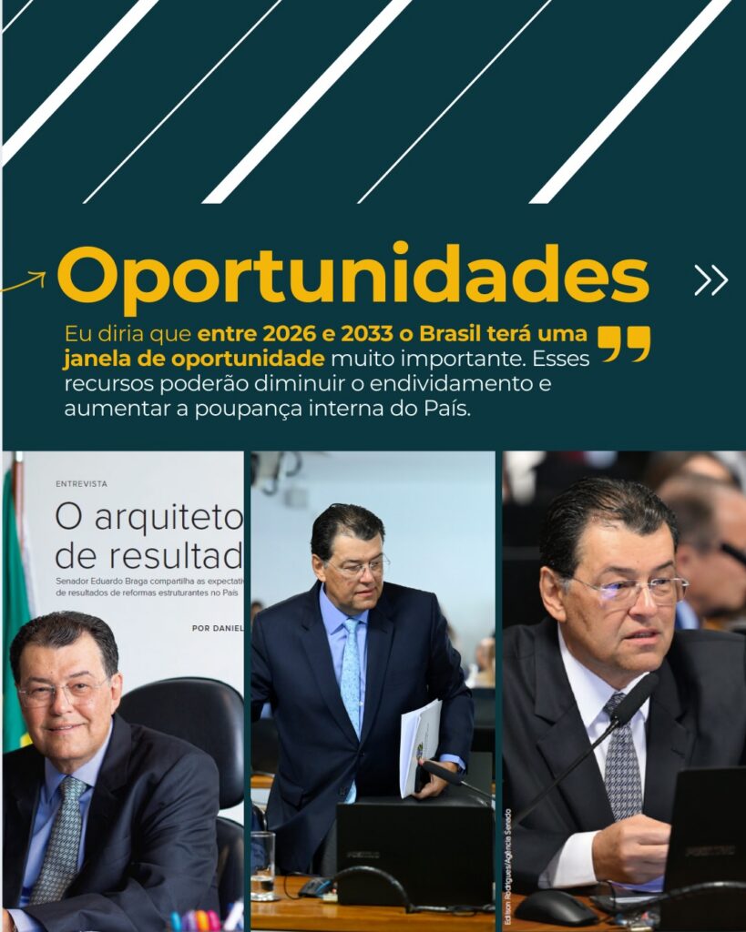Na entrevista, Braga traça um panorama otimista para o país, destacando uma janela de oportunidade entre 2026 e 2033. Segundo ele, esse período pode ser decisivo para reduzir o endividamento público e fortalecer a poupança interna, pavimentando o caminho para um novo ciclo de crescimento sustentável.
