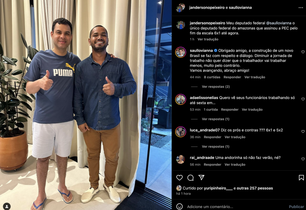 No Amazonas, a discussão sobre o fim da escala 6×1 tem gerado posições distintas entre os deputados federais. Até o momento, Saullo Vianna (União) é o único parlamentar da bancada que declarou apoio à PEC que visa extinguir essa modalidade de jornada de trabalho. Vianna se uniu ao movimento que defende a redução da carga horária e o aumento da qualidade de vida dos trabalhadores, atendendo à pressão popular e assinando a proposta.