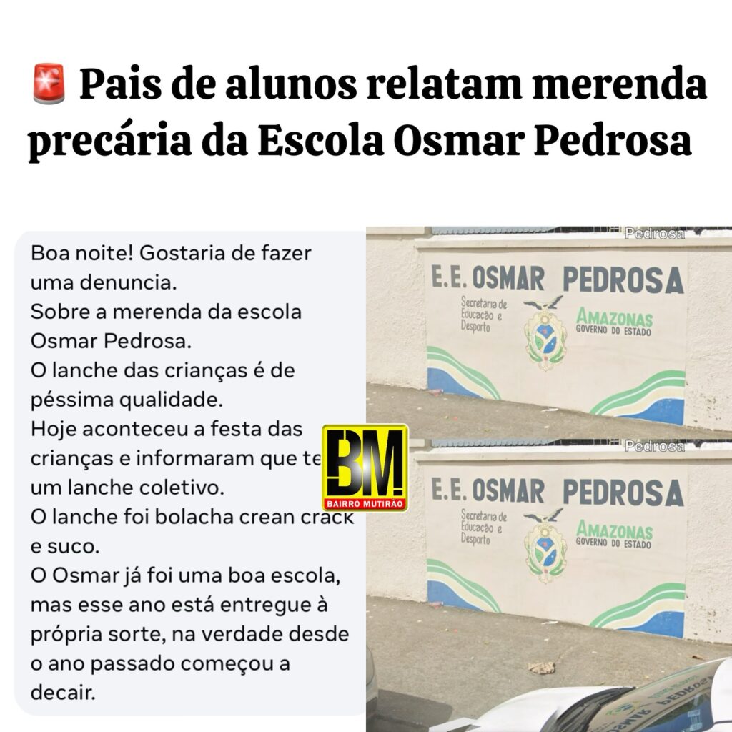 Pais de alunos estão revoltados após a Escola Estadual Osmar Pedrosa, no bairro Mutirão, servir bolacha cream crack com suco. Segundo os responsáveis, o lugar já tratou com mais dignidade os alunos, mas está em declínio desde o ano passado.