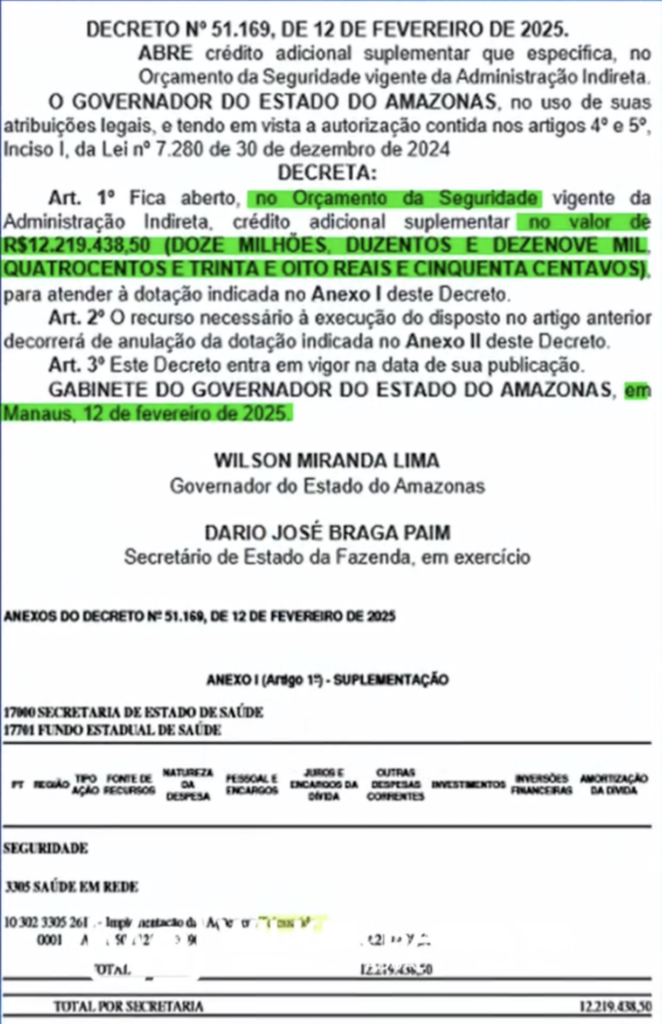 Na tribuna da Assembleia Legislativa, Wilker Barreto expôs que a Portaria n.º 127/2025, publicada no Diário Oficial do Estado (DOEAM) e assinada pelo secretário executivo da Secretaria de Estado de Saúde (SES-AM), Silvio Romano, evidencia um processo acelerado e pouco transparente. O parlamentar apontou que a ETIPI foi a única concorrente, sem registro de projeto básico ou termo de referência.