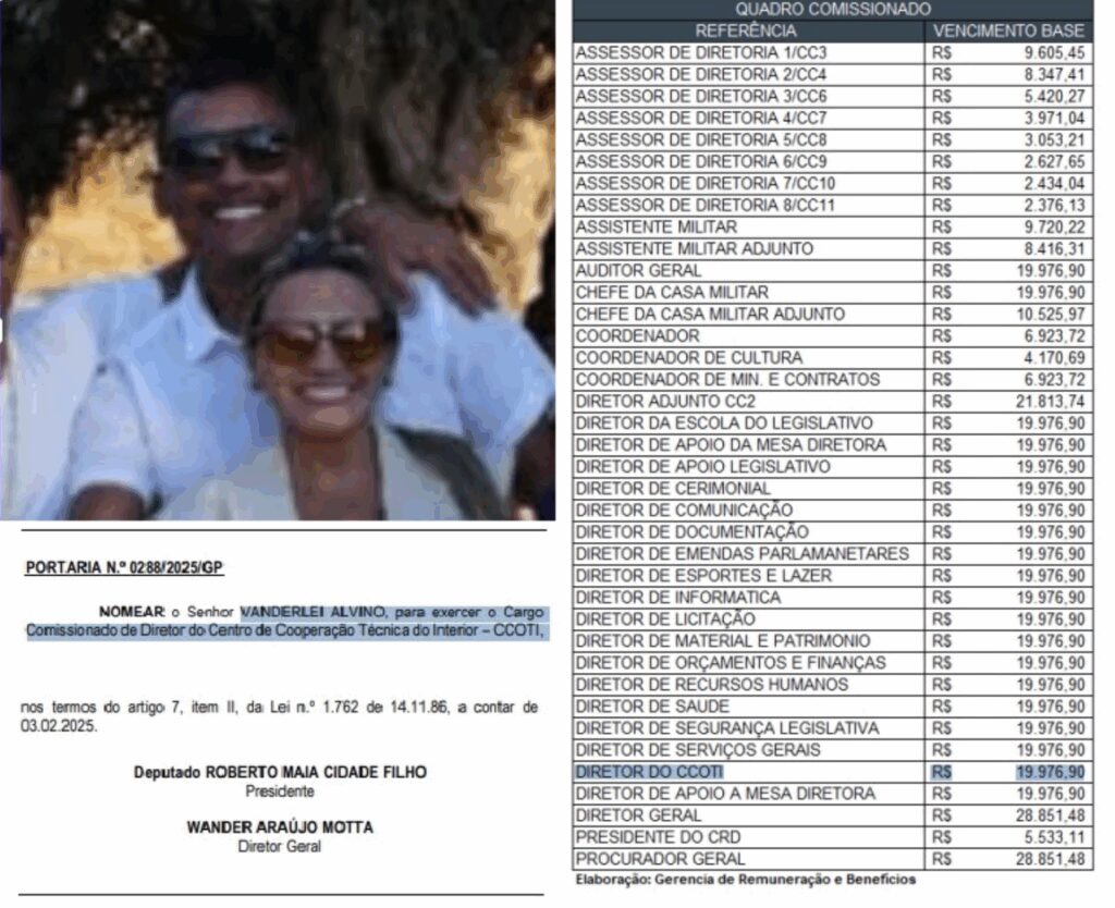Vanderlei Alvino (Vandex): Cunhado de Roberto Cidade, consta com cargo de Direção no Centro de Cooperação Técnica e Operacional da Tecnologia da Informação (CCOTI) da Aleam, com vencimentos brutos na casa dos R$ 19 mil. Ex-presidente do IDAM, seu nome já figurou no noticiário policial após ser citado em relatórios da Polícia Federal durante investigações sobre supostas fraudes, cujas reuniões teriam ocorrido na residência de Adriana.