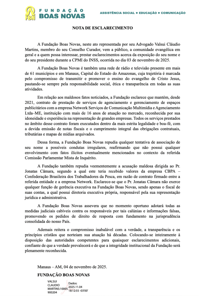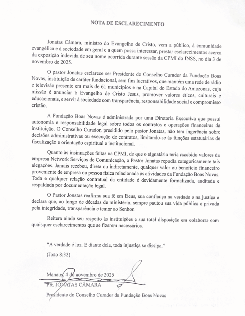 Em nota de repúdio, Silas afirmou que não há qualquer irregularidade e que todos os contratos são legais, transparentes e devidamente comprovados, com serviços prestados e tributos recolhidos. Ele lamentou não ter sido procurado antes para esclarecer o caso e disse confiar que “a verdade prevalecerá”