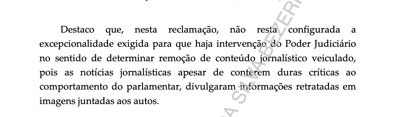 O STF reconheceu que a decisão da juíza violou frontalmente a Constituição e a jurisprudência do próprio Supremo, especialmente a ADPF 130, que proíbe qualquer tipo de censura prévia à imprensa. Segundo o relator, não houve abuso, mas sim crítica legítima a um político que ostenta luxo com dinheiro público.