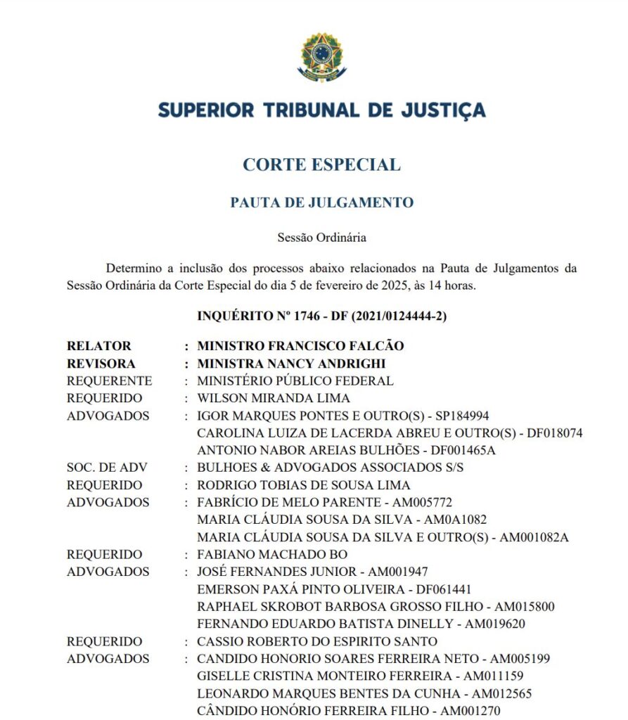Brasil – O Superior Tribunal de Justiça (STJ) está prestes a julgar, na próxima sessão ordinária do dia 5 de fevereiro de 2025, um dos casos mais polêmicos da crise sanitária no Brasil. O Inquérito 1746, que envolve o governador do Amazonas, Wilson Lima (UB), será analisado pela Corte Especial, que decidirá se recebe a denúncia por suposto desvio de recursos públicos destinados ao transporte de ventiladores pulmonares, comprados de forma emergencial no auge da pandemia de Covid-19.